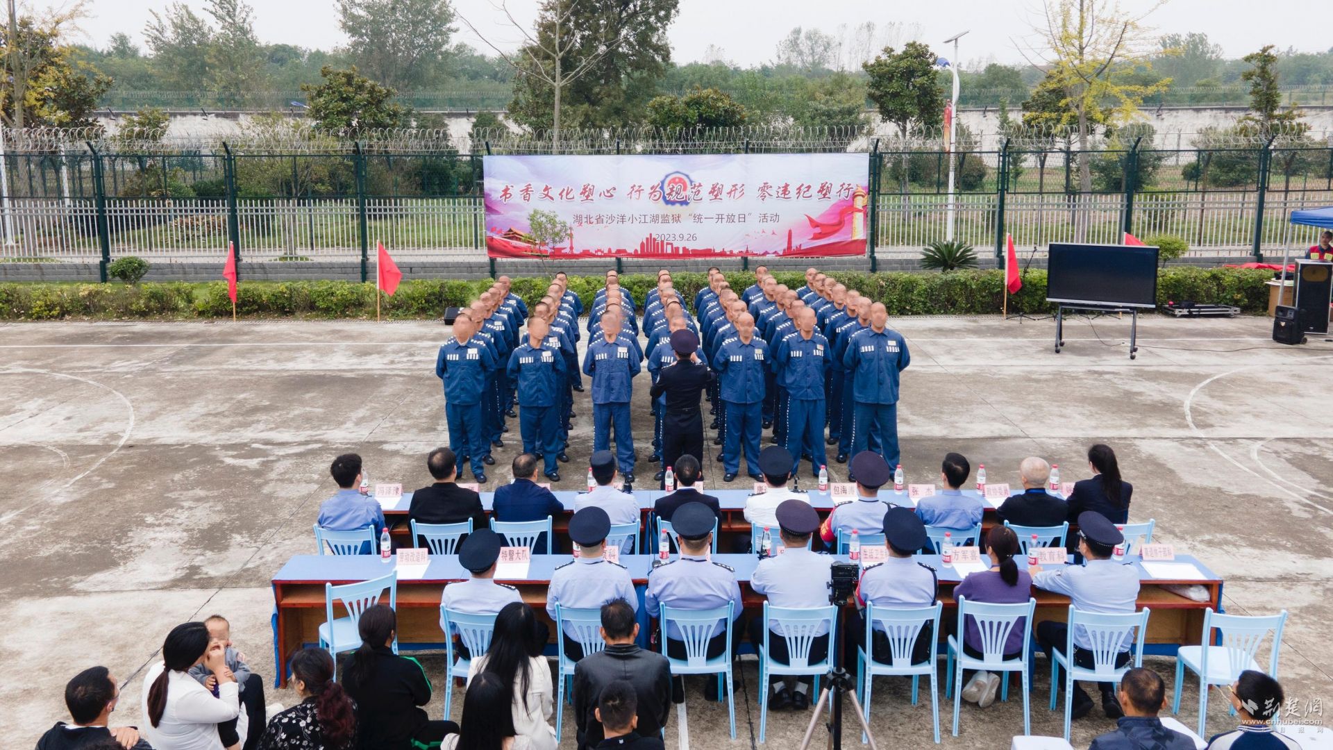 在活動主會場,沙洋小江湖監(jiān)獄黨委書記、監(jiān)獄長唐遠(yuǎn)平介紹了監(jiān)獄近年來在依法治監(jiān)上取得的顯著成效。監(jiān)獄黨委委員、副政委付雪松宣讀了《沙洋小江湖監(jiān)獄關(guān)于表彰2022年度服刑人員改造積極分子的決定》。6名受到監(jiān)獄表彰的改造積極分子、季度“零違紀(jì)”先進個人、季度“勞動之星”代表上臺領(lǐng)獎,服刑人員家屬為獲得表彰的親人們佩戴綬帶。