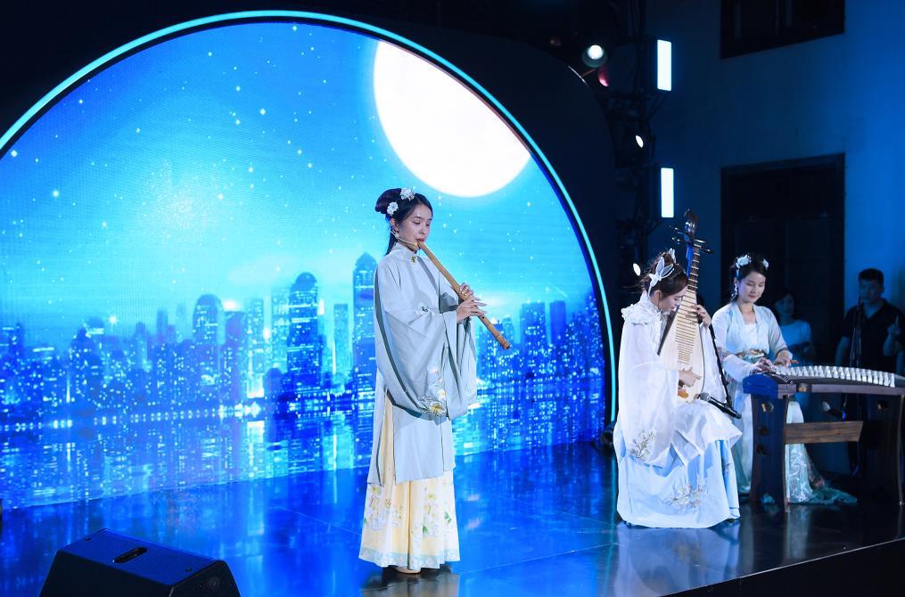 9月27日,演員在表演民樂(lè)合奏《城里的月光》。新華社記者 陳鐸 攝