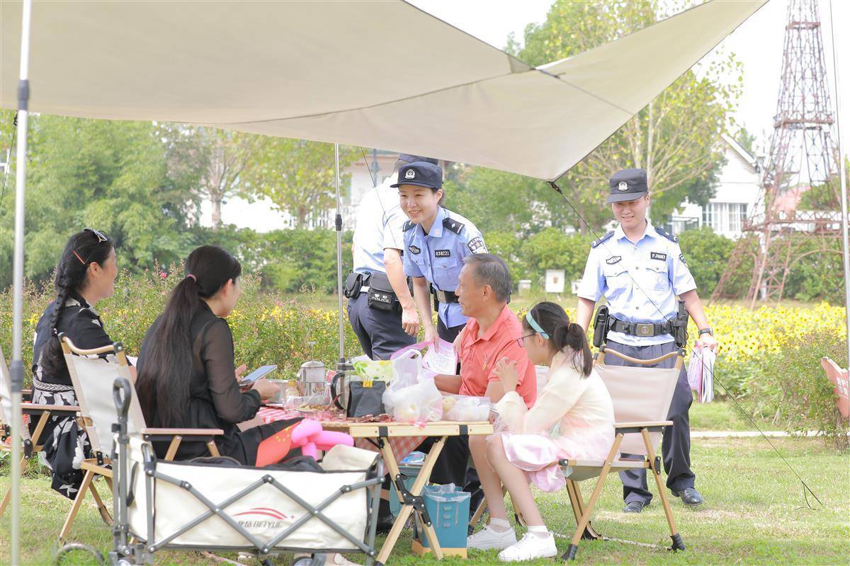 在花博匯景區(qū),剛參警兩個(gè)月的大集街派出所民警孫曠怡十分熱情,幫游客訂票指路,提醒游客照看好小孩,還趁機(jī)宣講防詐騙知識(shí)。