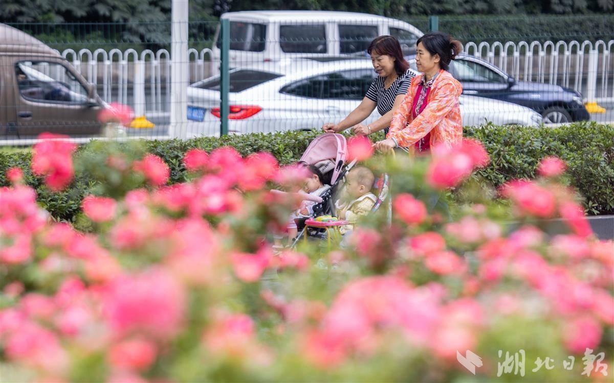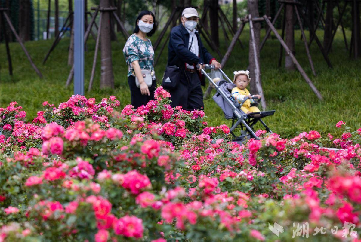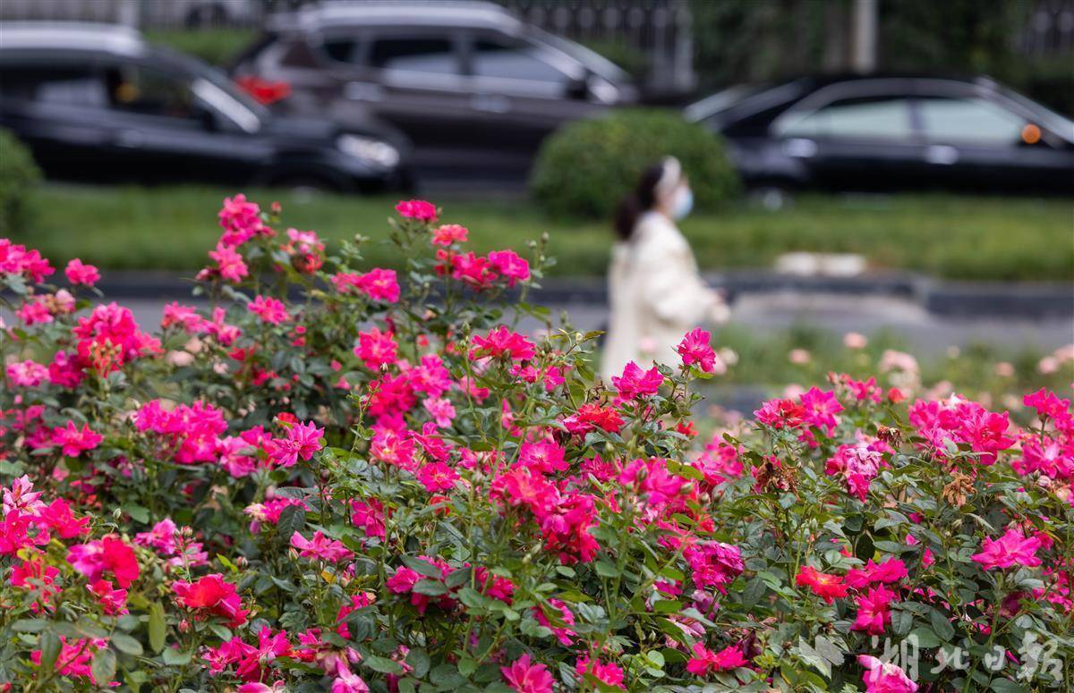 除常青路高架外,在機場二通道江漢段、二環(huán)線江漢段,以及常青路高架與二環(huán)線交會處的復(fù)興體育公園里,或紅或粉的月季花意盎然,形成獨特的“空中花廊”景觀。