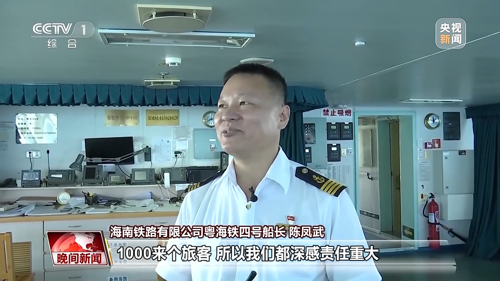 海南鐵路有限公司粵海鐵四號船長 陳鳳武:1000來個旅客,所以我們都深感責任重大,一定要確保旅客、司機還有車輛過海的客列貨列,保障安全運輸。