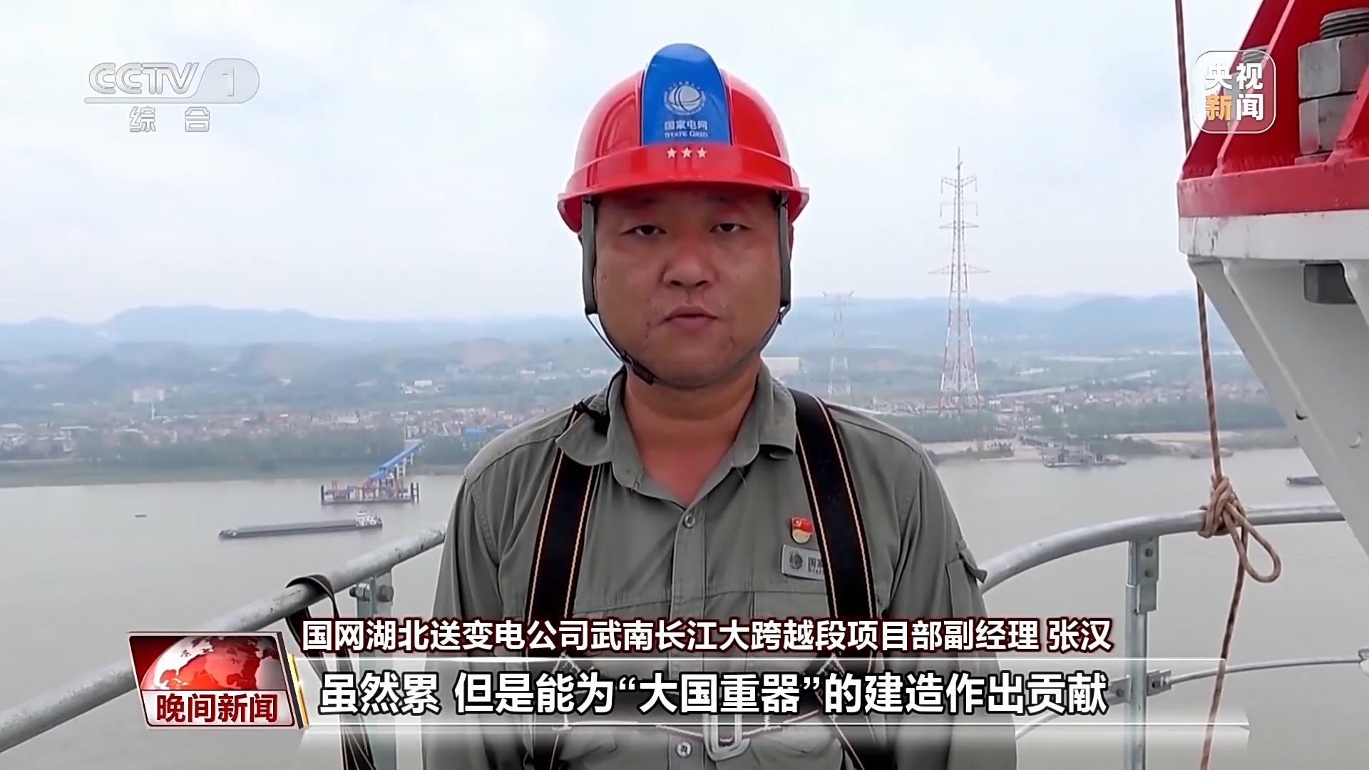 國網湖北送變電公司武南長江大跨越段項目部副經理 張漢:雖然累,但是能為“大國重器”的建造做出貢獻,我們感覺很榮幸。