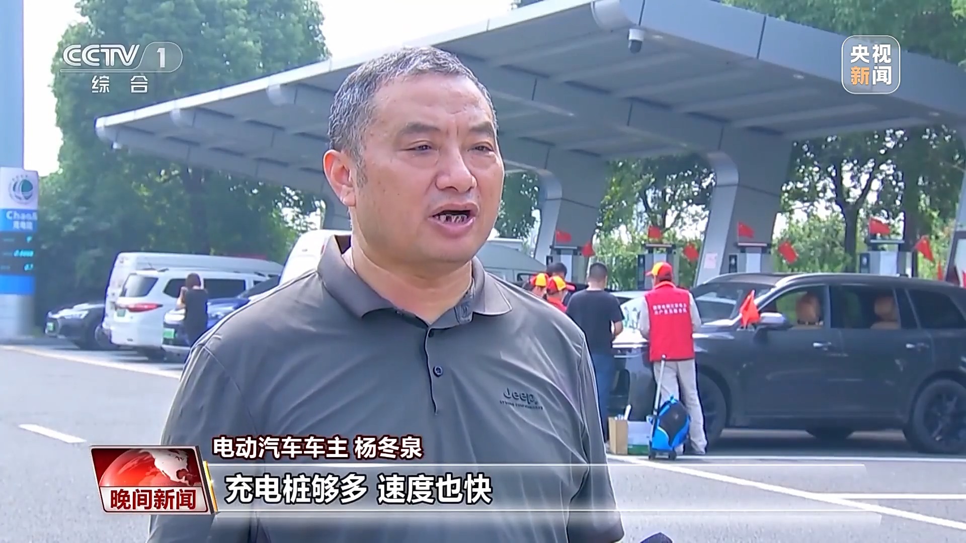 電動汽車車主 楊冬泉:充電樁夠多,速度也快。大約20分鐘就從30%充到了100%,一下子節省了不少時間。