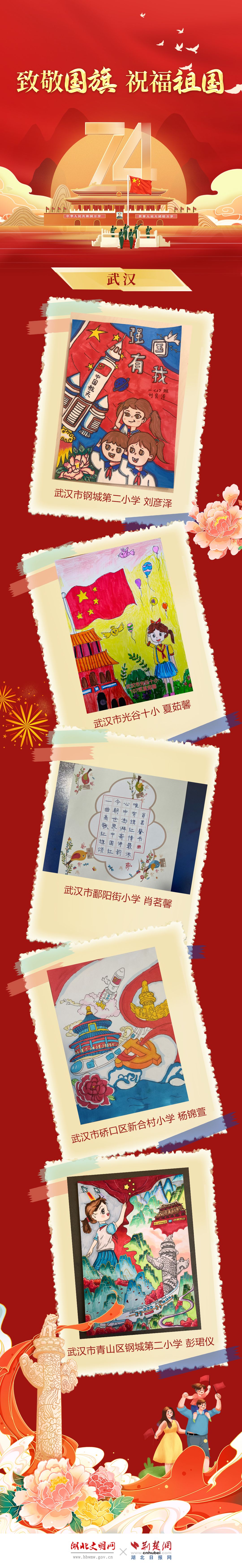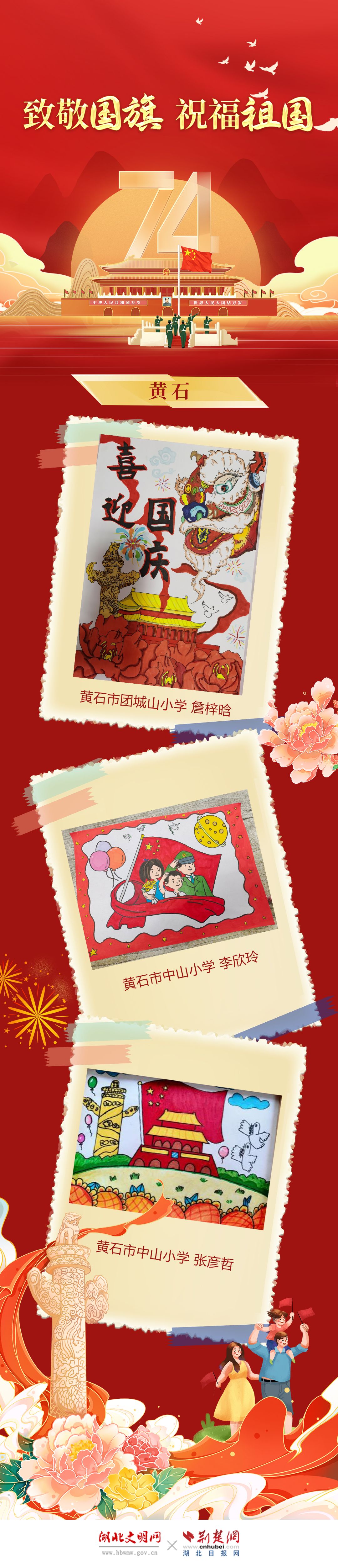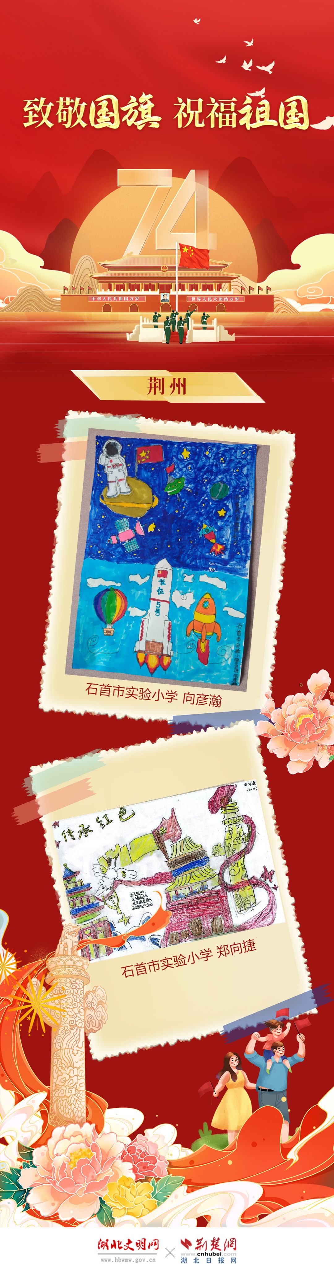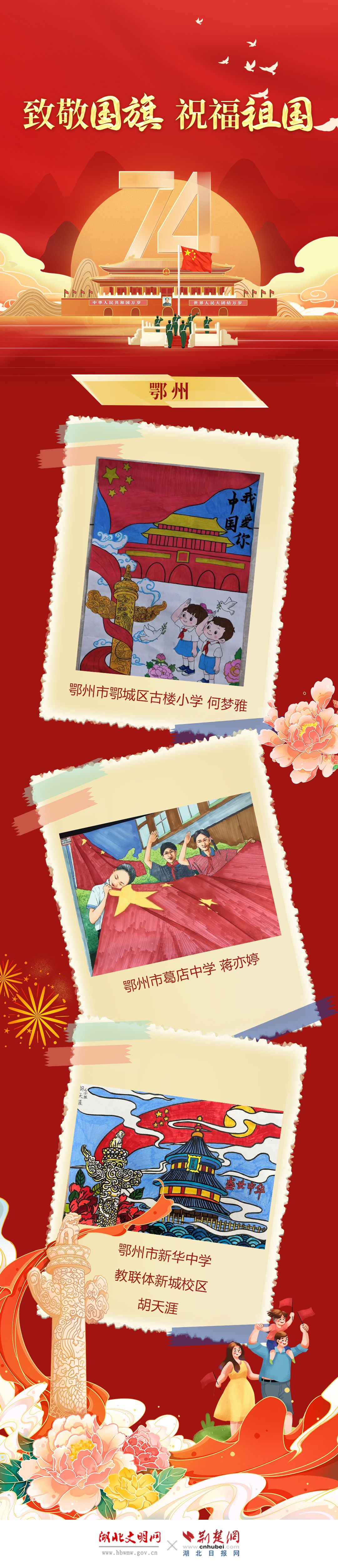 活動期間,荊楚網、文明湖北面向全省中小學生征集圍繞“致敬國旗 祝福祖國”主題創作的書畫作品。全省17個市州中小學師生踴躍投稿,活動郵箱共收到超過三千件書畫作品,每一件作品都飽含著青少年對祖國的深深祝福。