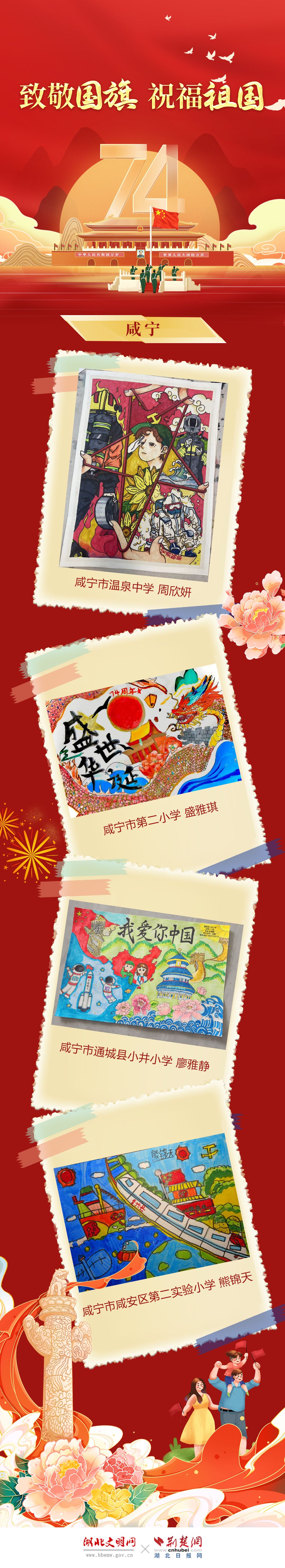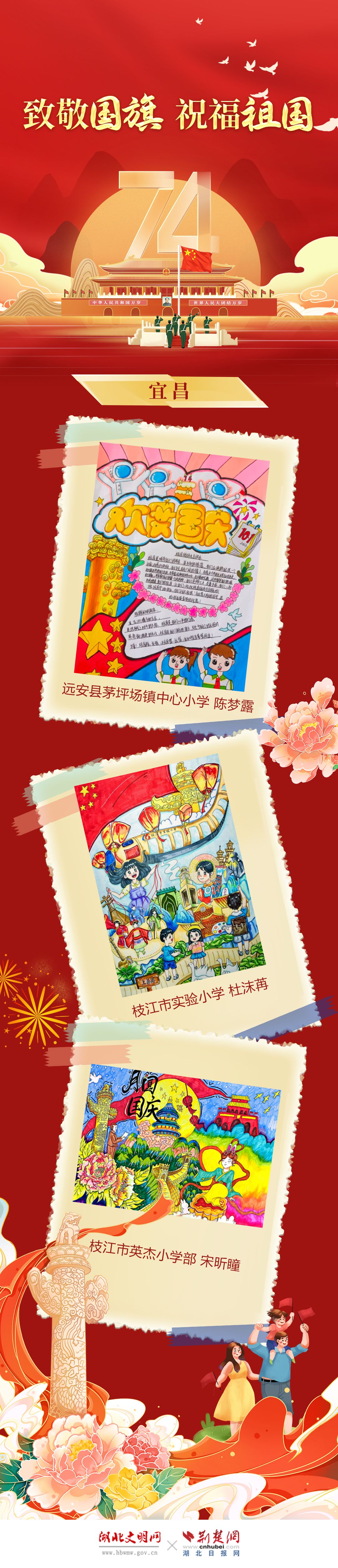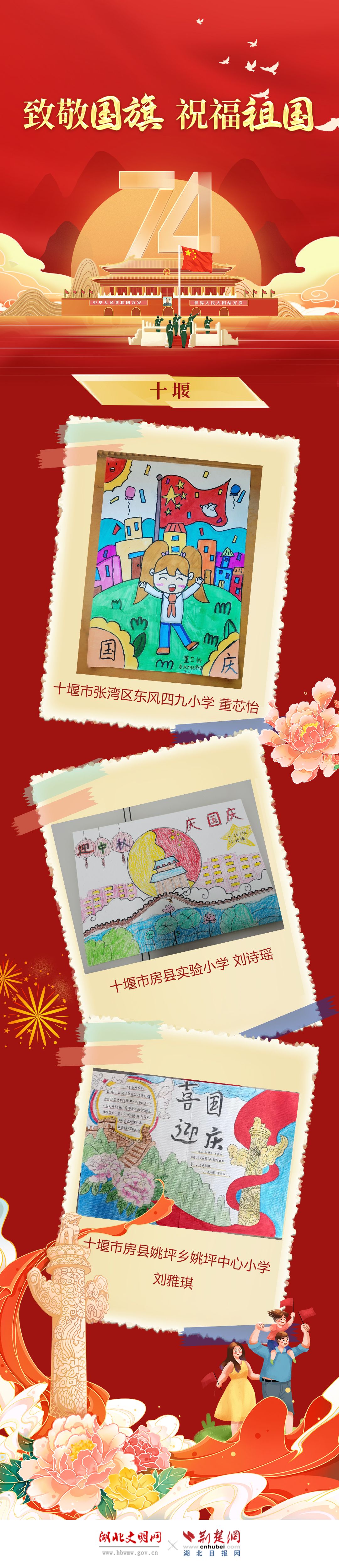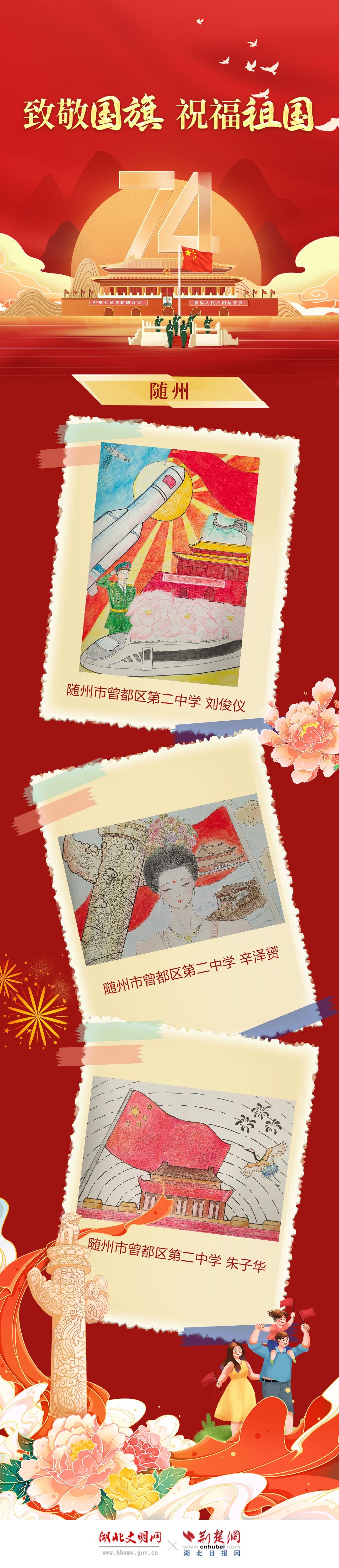 活動期間,荊楚網、文明湖北面向全省中小學生征集圍繞“致敬國旗 祝福祖國”主題創作的書畫作品。全省17個市州中小學師生踴躍投稿,活動郵箱共收到超過三千件書畫作品,每一件作品都飽含著青少年對祖國的深深祝福。