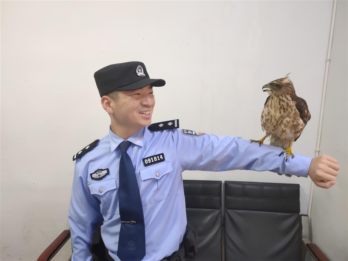 經鑒定,此鷹學名雀鷹,系國家二級保護動物,民警仔細觀察后,未發現該雀鷹身體部位有傷痕,推測可能是身體虛弱,無法正常飛行,民警遂為其提供水和食物,隨后移送到林業部門接受治療。