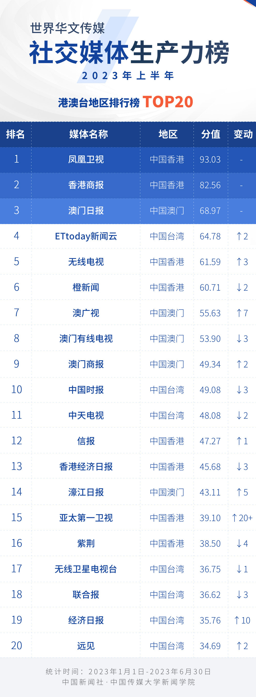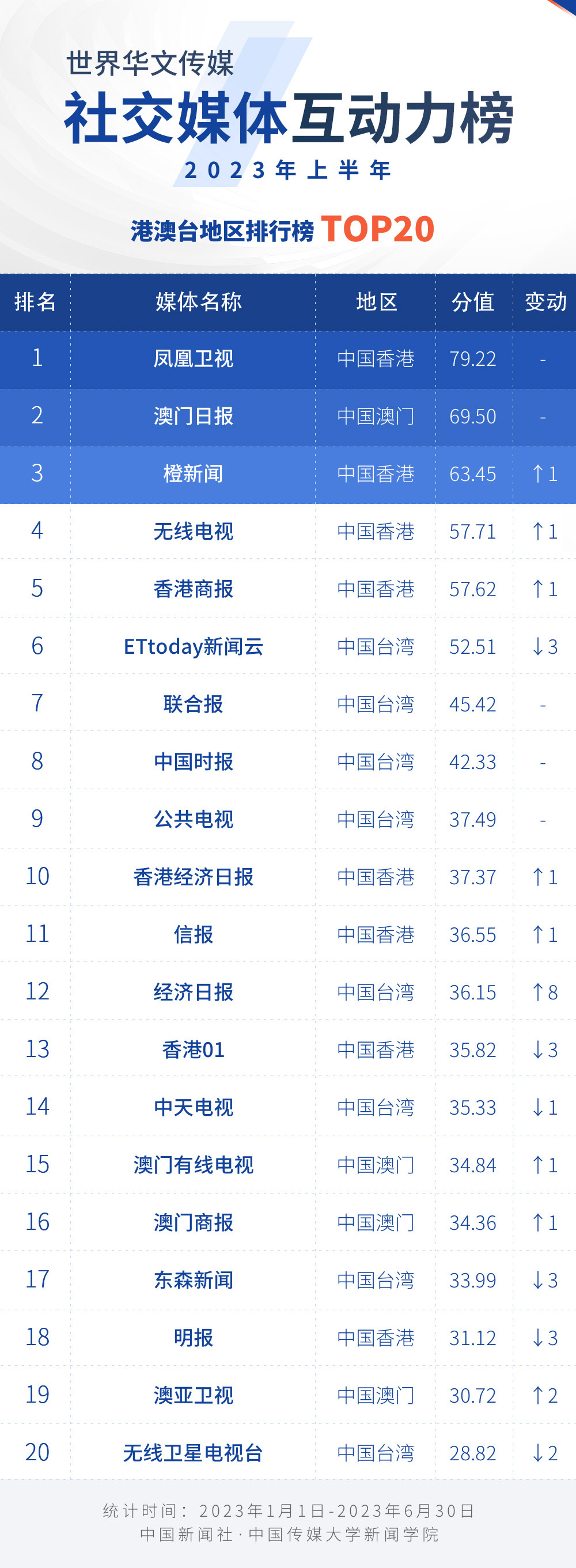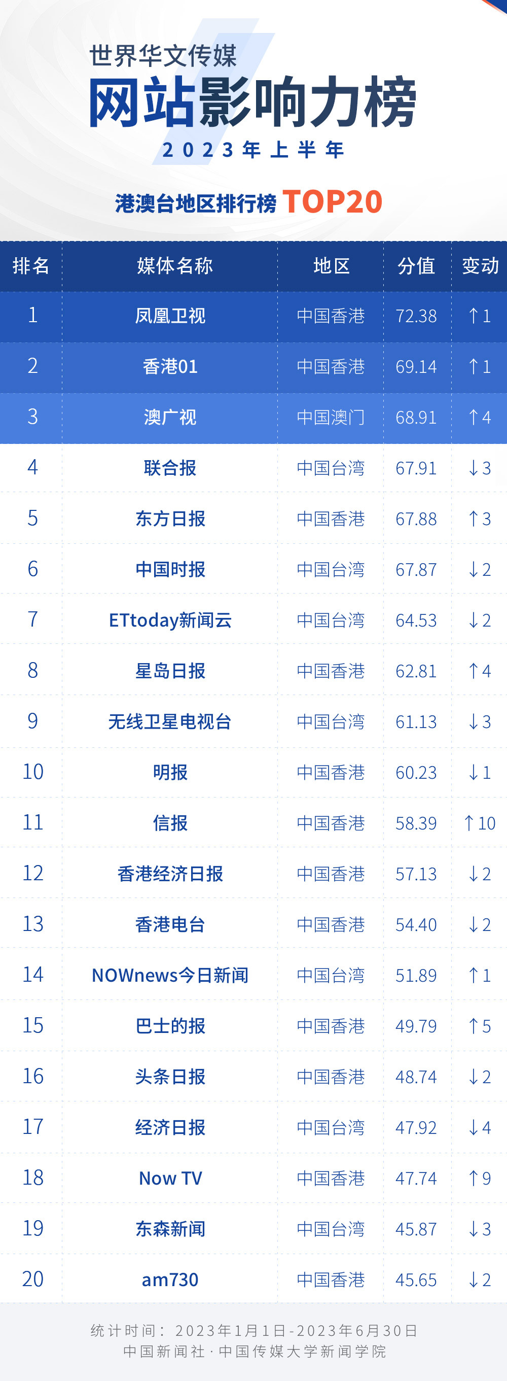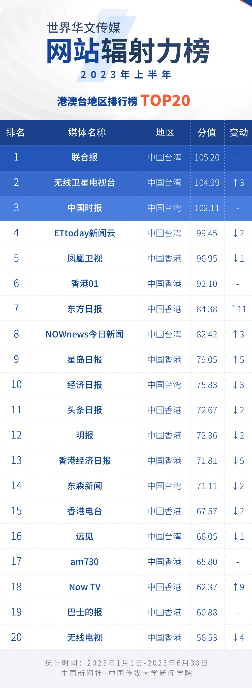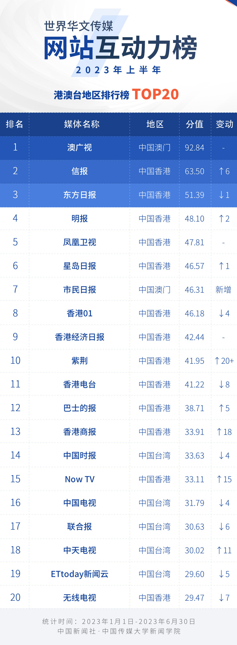 中國新聞社與中國傳媒大學新聞學院持續開展“世界華文傳媒新媒體影響力”測評項目,現根據2023年上半年世界華文傳媒新媒體的業務數據,發布2023年上半年榜。