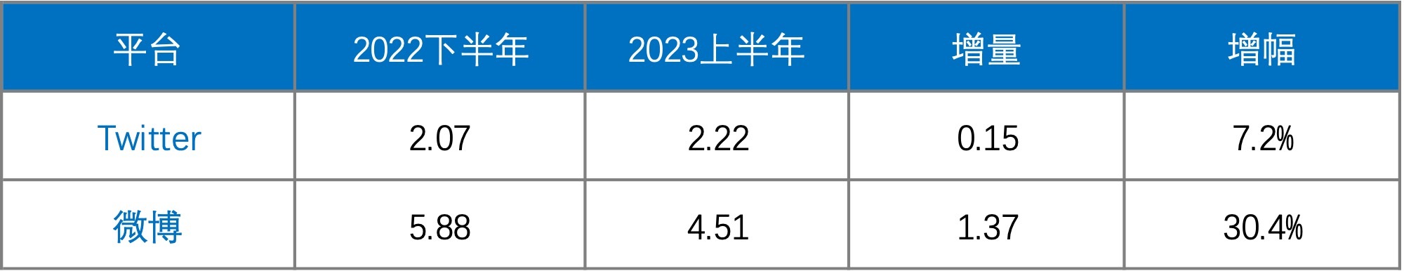 表3 華文媒體Twitter、微博平臺條均評論量變化情況