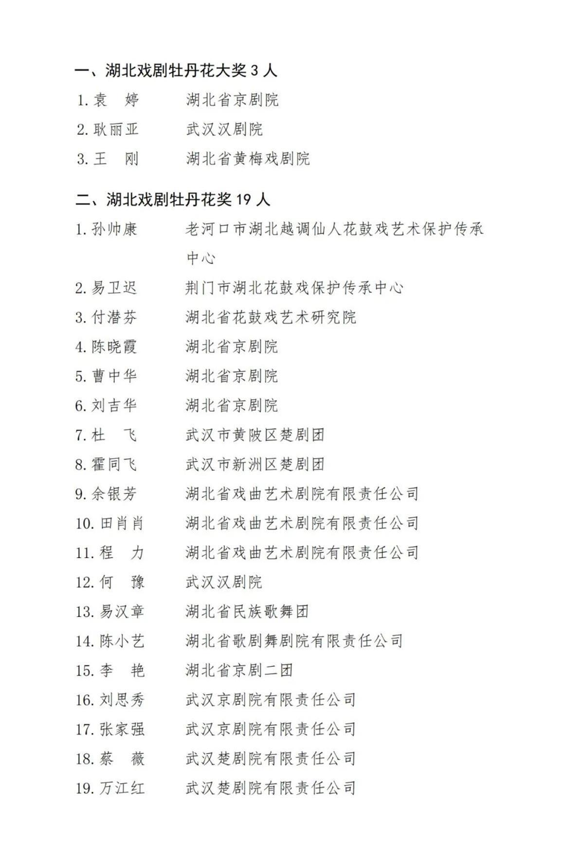 10月11日,湖北省戲劇家協(xié)會發(fā)布《第十四屆湖北戲劇牡丹花獎終評結(jié)果的公示》。共有19名演員擬準(zhǔn)獲得“湖北戲劇牡丹花獎”,3名演員擬準(zhǔn)獲得“湖北戲劇牡丹花大獎”。