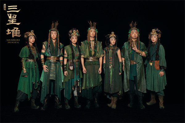 從左至右依次:陳雨秋、陳壬權、田思陳、賴劍超、蔣欣怡、王維、熊子慧(飾古蜀國子民)