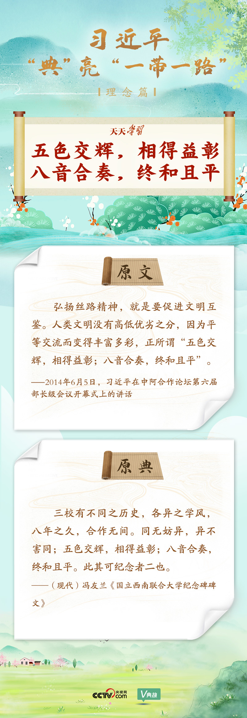 在國內國際多個重要場合,習近平主席頻頻引經據典,介紹“一帶一路”承載的厚重歷史,闡述“一帶一路”建設的理念和重大意義,描繪“一帶一路”美好的發展愿景。央視網《天天學習》欄目特選取習近平主席的部分用典,與您一起學習領會。