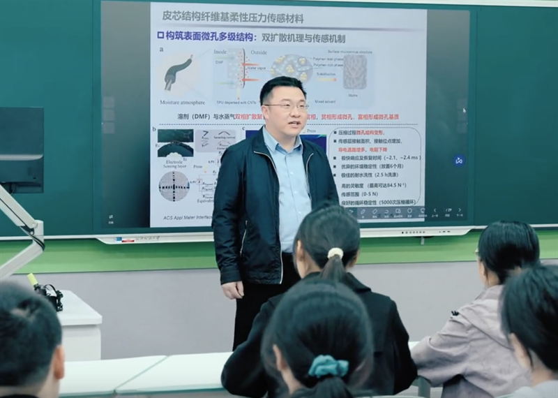 武漢紡織大學王棟教授在分享科研成果。