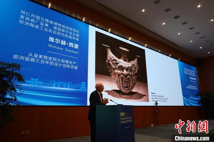 德國(guó)拜仁州國(guó)立陶瓷博物館創(chuàng)館館長(zhǎng)、歐洲陶瓷工業(yè)歷史研究權(quán)威學(xué)者維爾赫·西蒙(Wilhem Siemen)進(jìn)行主旨演講。主辦方供圖