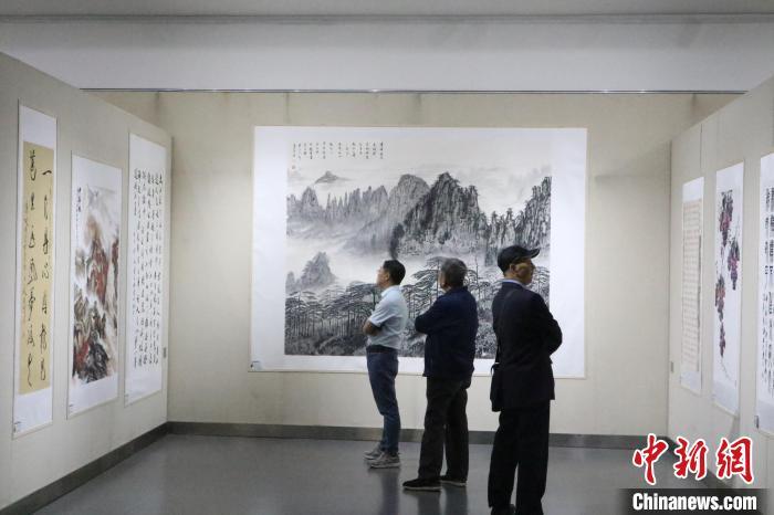 10月18日,為紀念臺灣首任巡撫劉銘傳誕辰180周年,海峽兩岸暨港澳書畫名家作品展(巡展)在安徽省合肥市舉行。圖為參觀者欣賞書畫作品。 中新社記者 趙強 攝