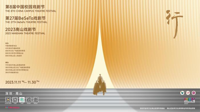 2023年11月11日至30日,由中國(guó)戲劇家協(xié)會(huì)、中共深圳市委宣傳部、深圳市文化廣電體育旅游局、深圳市文學(xué)藝術(shù)界聯(lián)合會(huì)、深圳市南山區(qū)人民政府共同主辦的第8屆中國(guó)校園戲劇節(jié)、第27屆BeSeTo戲劇節(jié)暨2023南山戲劇節(jié)將在深圳市拉開(kāi)大幕,精彩亮相。本屆戲劇節(jié)主題為“行”,意為戲劇伴隨我們“一路同行”“行則將至”“行者常至”。