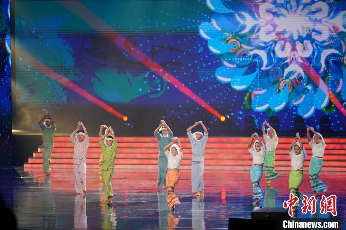 圖為“非遺之夜”上演的節目之一,潑水節舞曲《up臨滄》。 中新網記者劉冉陽 攝