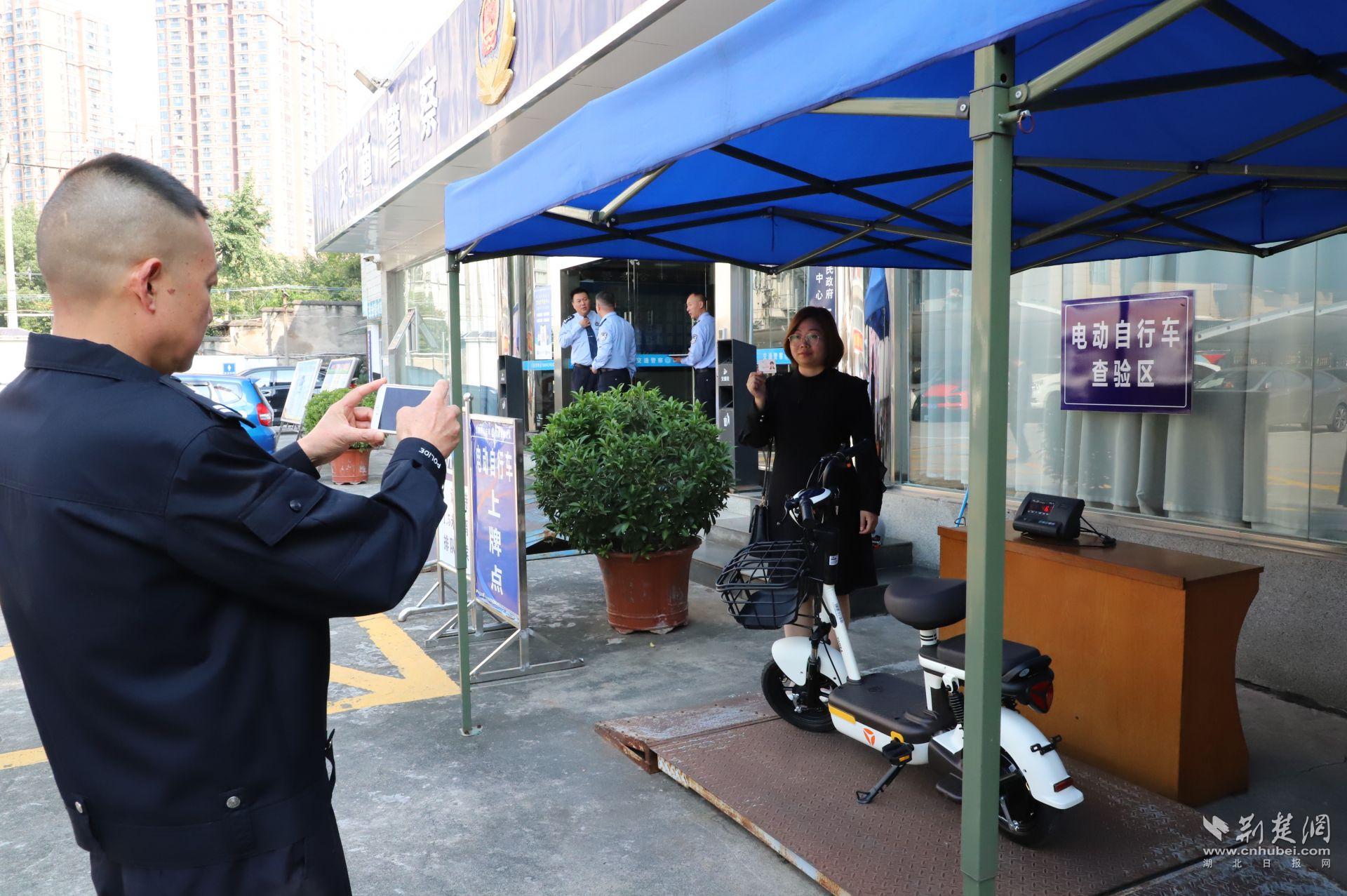 荊楚網(湖北日報網)訊(通訊員 姚華 程偉) 10月18日,是湖北省宜昌市新修訂的《電動自行車車輛登記操作手冊》正式實施的第一天。市民張雪蓮榮幸地成為該市快捷上牌的第一人,她在宜昌市公安局交警支隊伍家大隊電動自行車上牌點高興地說:“太方便了,不到20分鐘,牌照就辦好了!”
