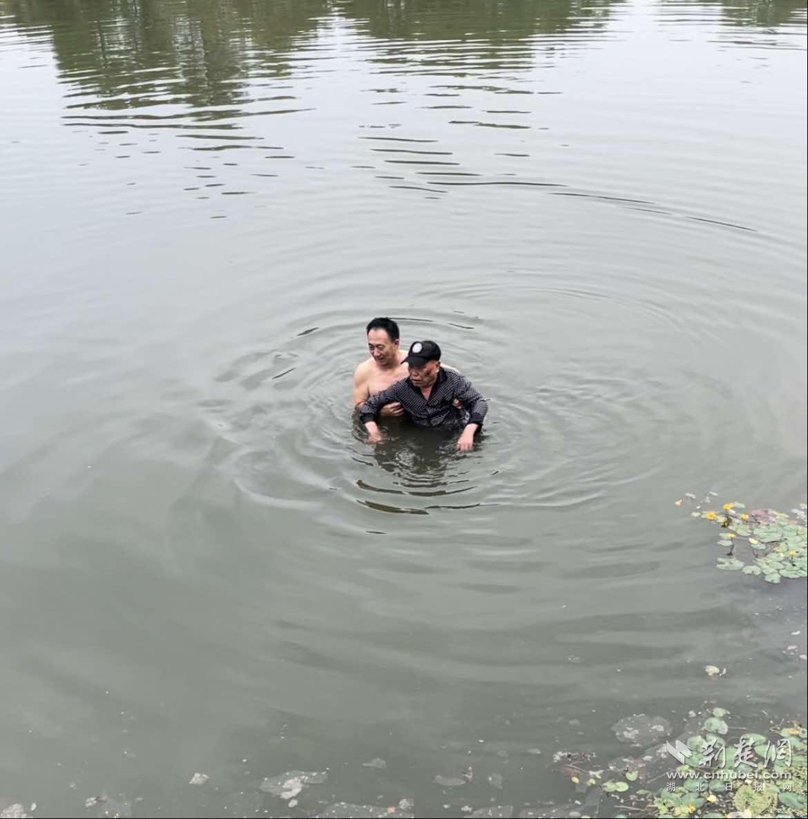 緊急關(guān)頭,滕彩禮迅速脫掉衣服跳入湖中,連走帶游向湖中老人靠近。他先是從背后抓住老人衣服用力朝上提,借助水的浮力向岸邊移動(dòng)。接著,滕彩禮將老人抱在懷里,向岸邊靠近。到了岸邊,兩位小伙子上前幫忙,將老人拉上岸。