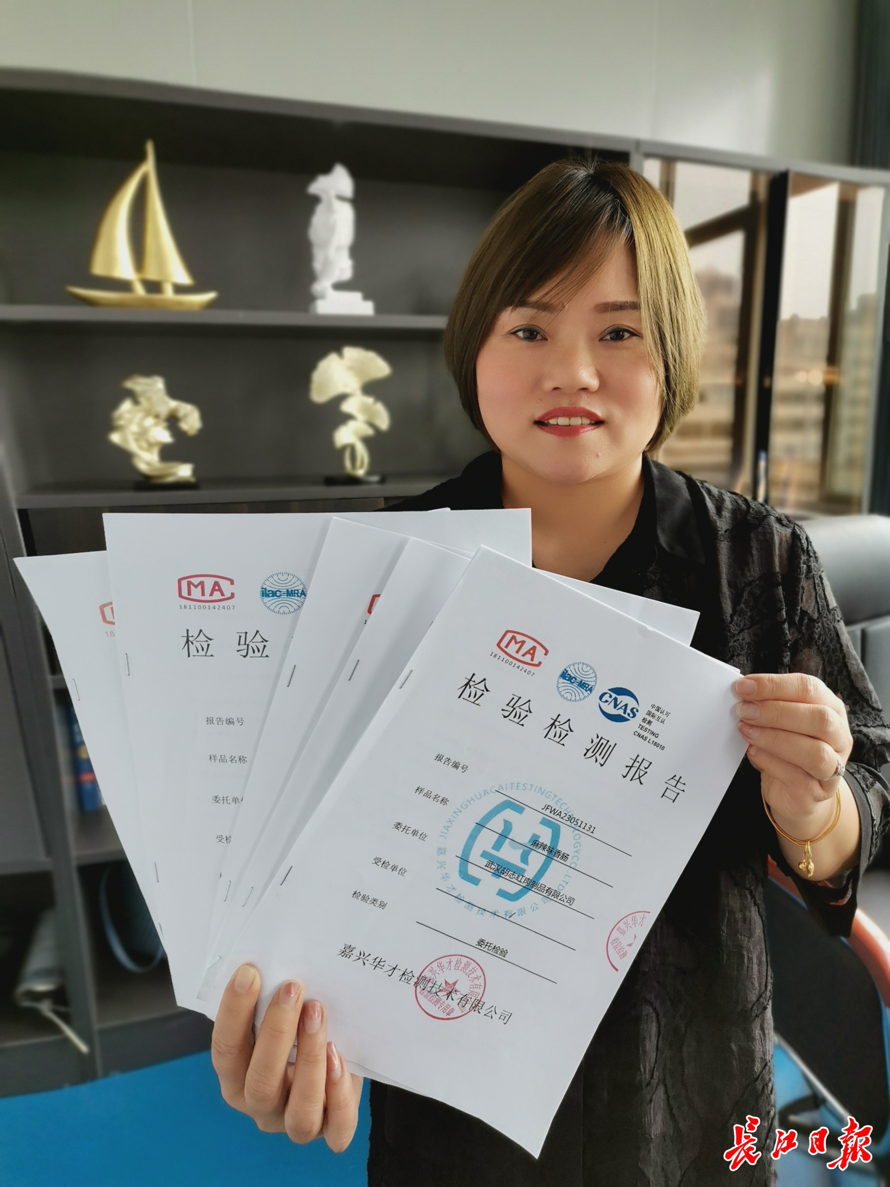 胡志紅展示產(chǎn)品的檢測報告。長江日報記者 史強 攝