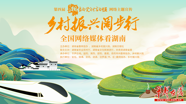 本次主題宣傳活動由湖南省委網信辦、湖南省鄉村振興局、湖南日報社主辦,湖南省農業農村廳、湖南省文化和旅游廳、共青團湖南省委聯合主辦,華聲在線,益陽、湘西、邵陽、婁底、岳陽市州委網信辦、鄉村振興局承辦,從10月22日持續至27日。