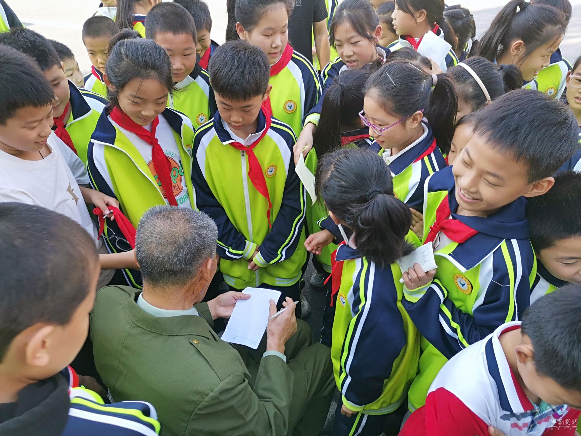 “同學(xué)們,注意安全,不要擠,一個(gè)一個(gè)來(lái)?!辈灰粫?huì),陳榮國(guó)、姚興明就被學(xué)生們圍得水泄不通。這時(shí),上課鈴響了,見還有一些同學(xué)沒有拿到簽名本,老師便允許他們推遲進(jìn)教室。有的同學(xué)著急沒帶書本,卻不想錯(cuò)過(guò)這個(gè)機(jī)會(huì),便讓老兵爺爺把名字簽在紅領(lǐng)巾和手臂上。