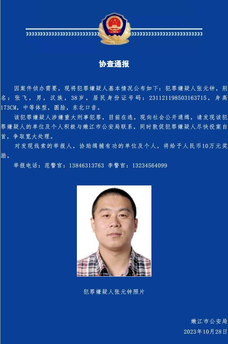 10月28日,黑龍江省嫩江市公安局發布協查通報: