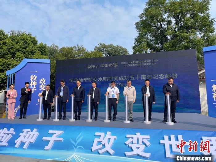 11月3日,紀(jì)念秈型雜交水稻研究成功五十周年郵冊(cè)首發(fā)儀式在安江農(nóng)校紀(jì)念園舉行。 懷化市委宣傳部 供圖