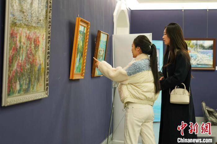百余幅俄羅斯油畫吸引游客駐足欣賞。趙宇航 攝
