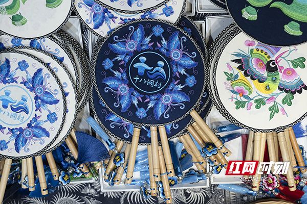 十八洞村苗繡鄉村振興示范基地里的精美團扇。