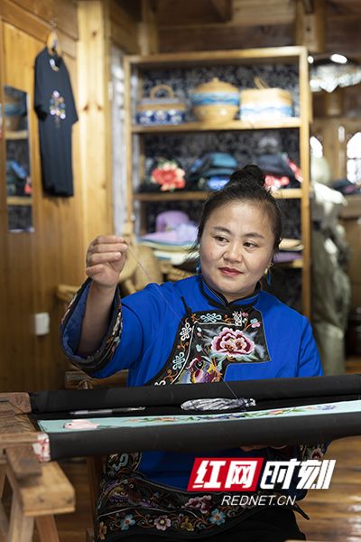 傳統苗繡市場有限,去年,十八洞村引進了陳國桃團隊的苗繡公司。“不僅打開了市場,通過培訓,留守婦女們掌握了苗繡非遺技藝后,每月在家就能增收1200元至5000元左右。