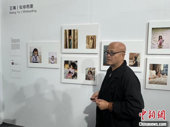 11月8日,策展人羅大衛(wèi)介紹AI影像藝術(shù)作品。 中新社記者 周健 攝