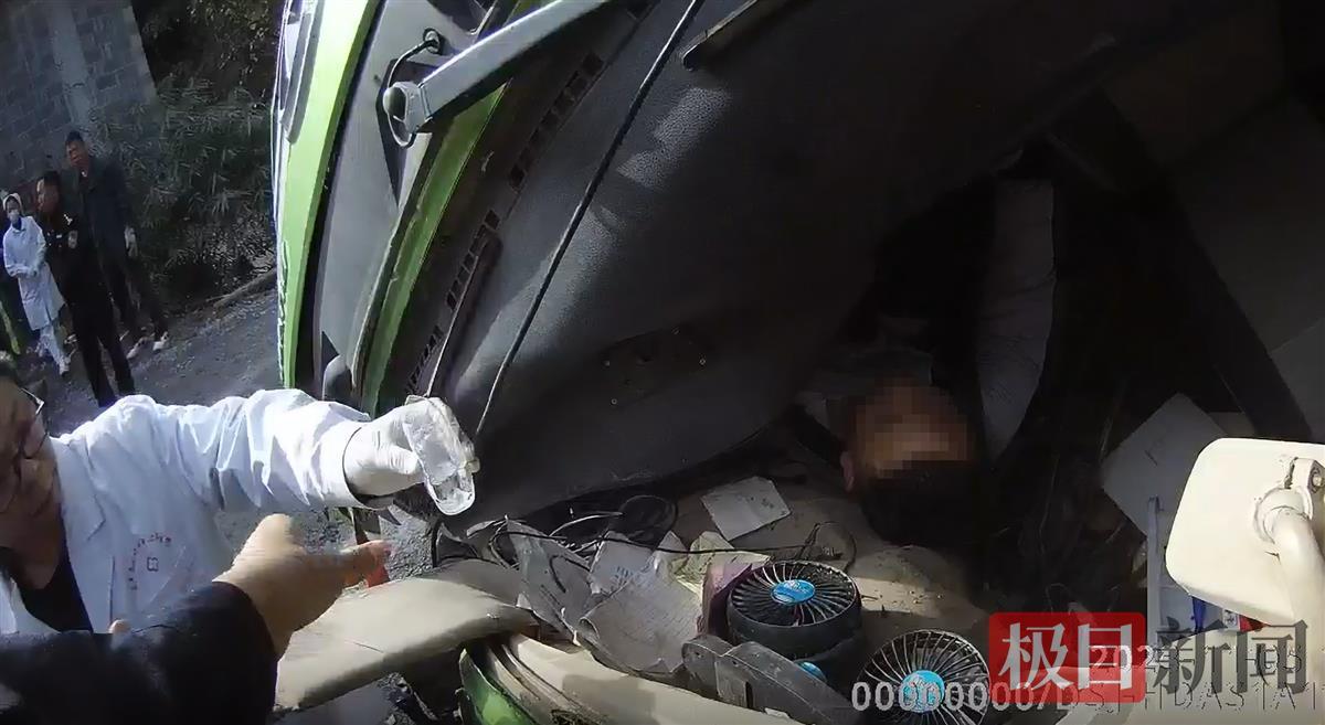 民警和醫(yī)生給被困司機(jī)送水(視頻截圖)