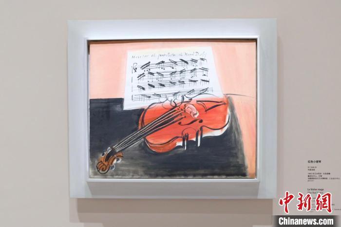 拉烏爾·杜菲《紅色小提琴》,作品中有題字“拉烏爾·杜菲的音樂與繪畫”。 中新網(wǎng)記者 王笈 攝