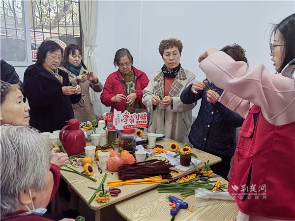 居民們展示DIY手工太陽(yáng)花。 通訊員供圖