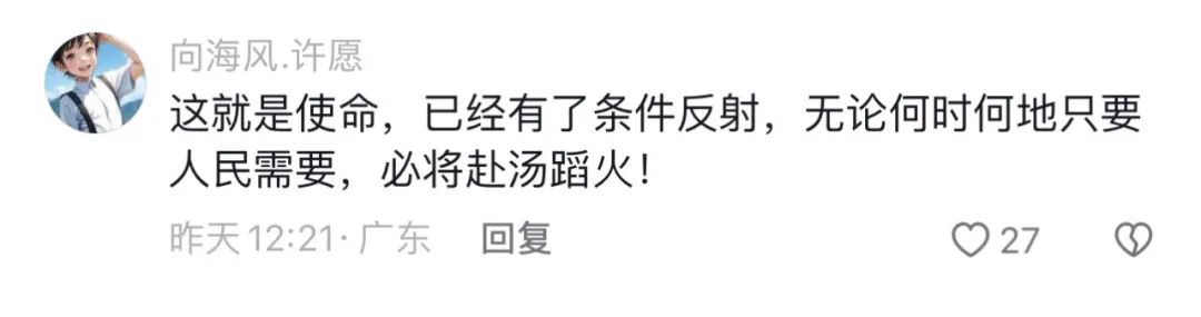 對于網友的評論,崔姚峰回應:“有警必出,是我們每一個消防員的職責和使命?!?/p>