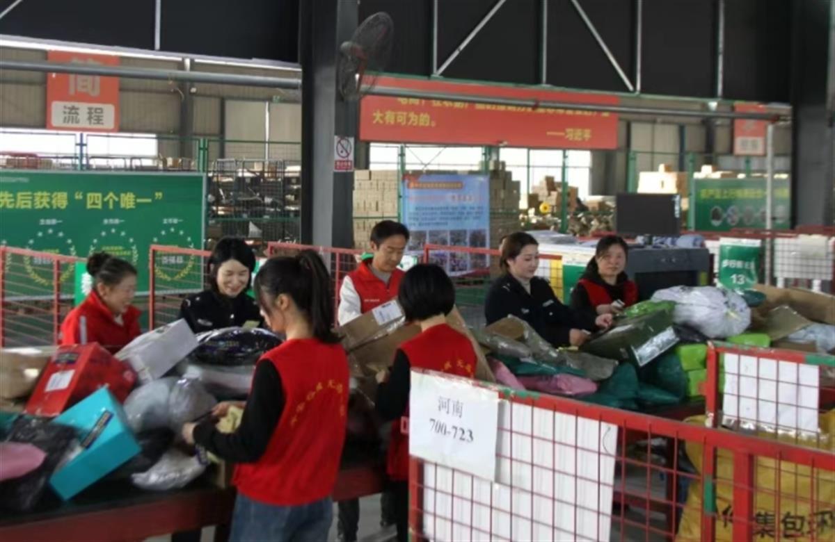 分揀包裹現場,民警、禁毒社工和快遞工作人員對即將送到市民手上的快遞包裹上貼上“珍愛生命,遠離毒品”“全民禁毒,健康生活”等禁毒標語。