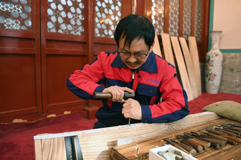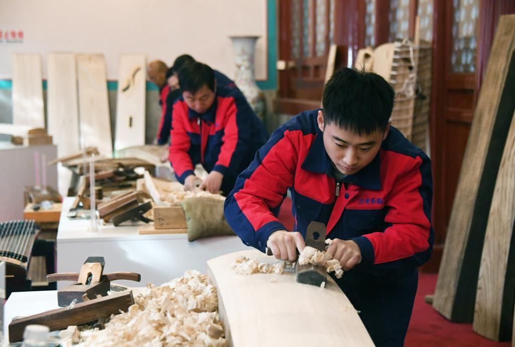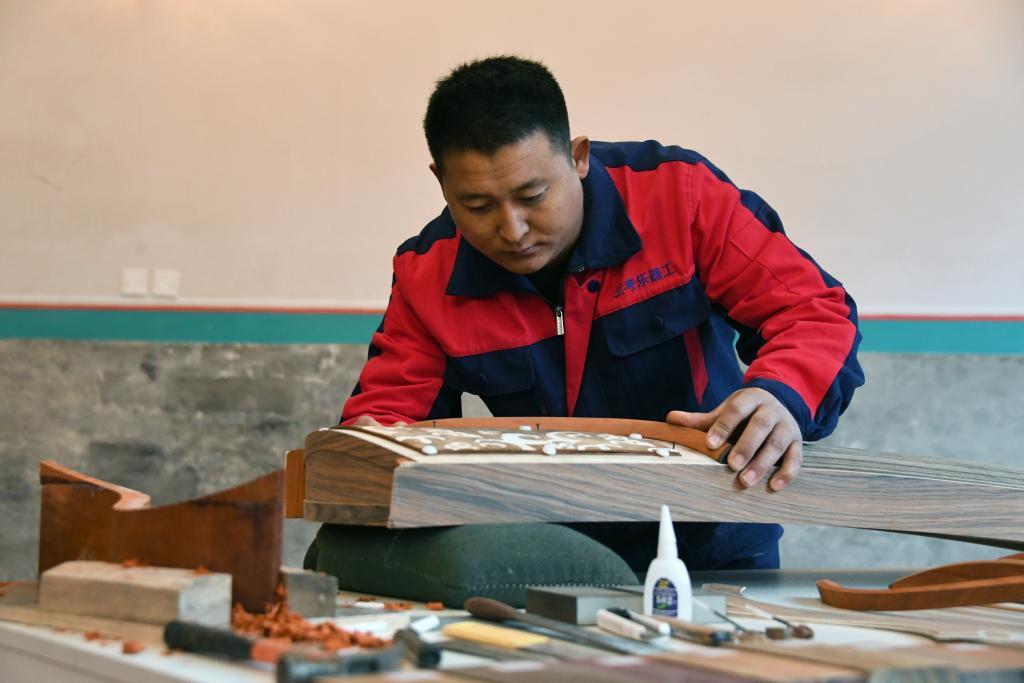 11月15日,樂器制作師在活動中展示“蘭考古箏”制作。新華社記者 任超 攝