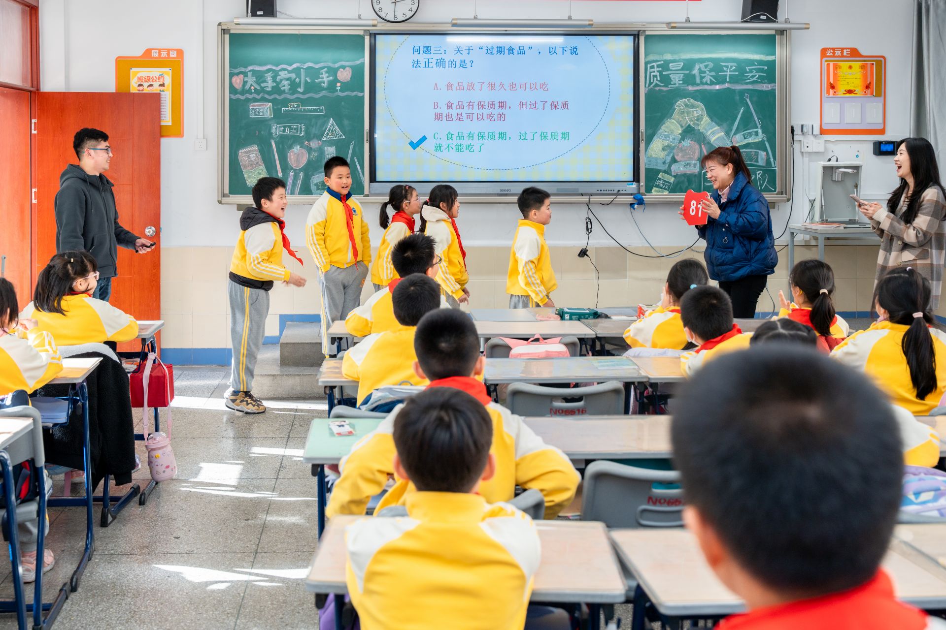 小朋友天性愛玩,為了實現寓教于樂的效果,活動現場還開展了趣味十足的數字寶箱答題活動。在一片歡聲笑語中,同學們進一步鞏固了學到的質量知識,紛紛表示以后要和垃圾食品說拜拜,養成科學的飲食習慣。同時,在文具的選擇上不再特別追求新奇,更加注意安全性。