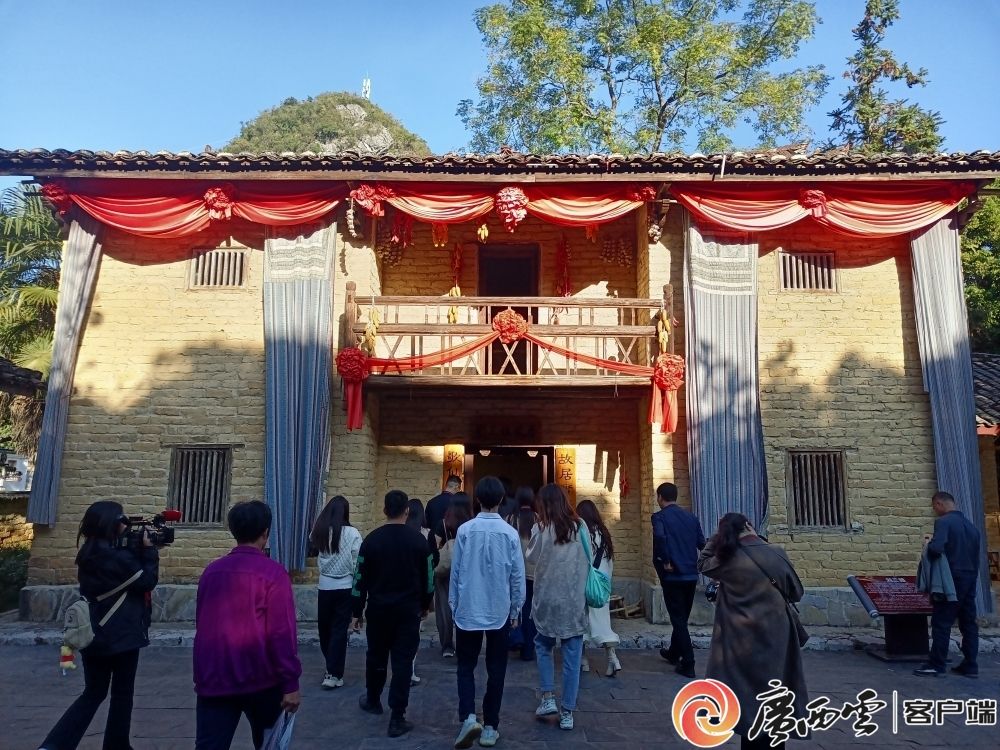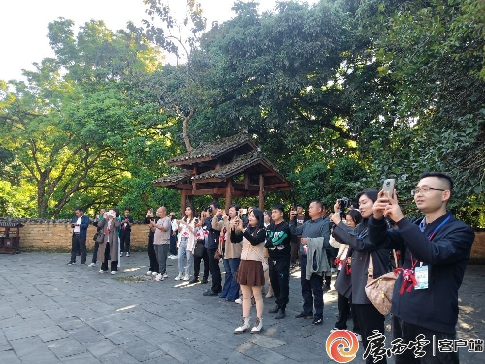 記者們打卡劉三姐故居。記者 周隆富 攝