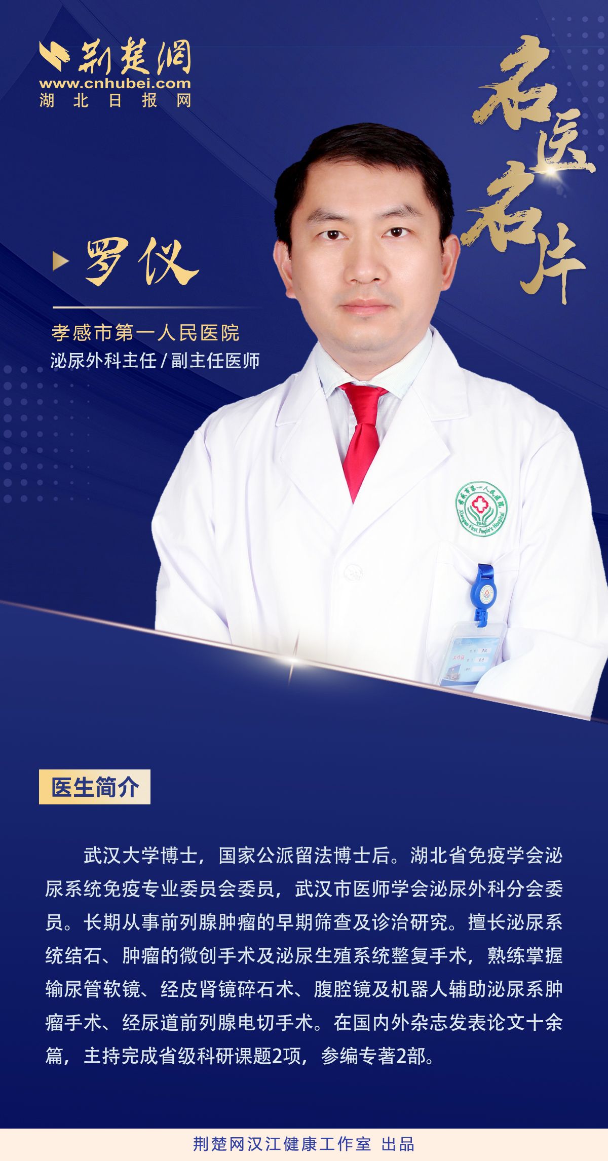 羅儀是孝感市第一人民醫院泌尿外科主任,副主任醫師。武漢大學博士,國家公派留法博士后。湖北省免疫學會泌尿系統免疫專業委員會委員,武漢市醫師學會泌尿外科分會委員。
