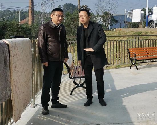 柯兵與社區人員查看安全護欄建設情況。通訊員 供圖