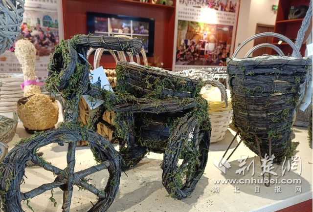 展廳里琳瑯滿目的藤編工藝品。記者 周隆富 攝