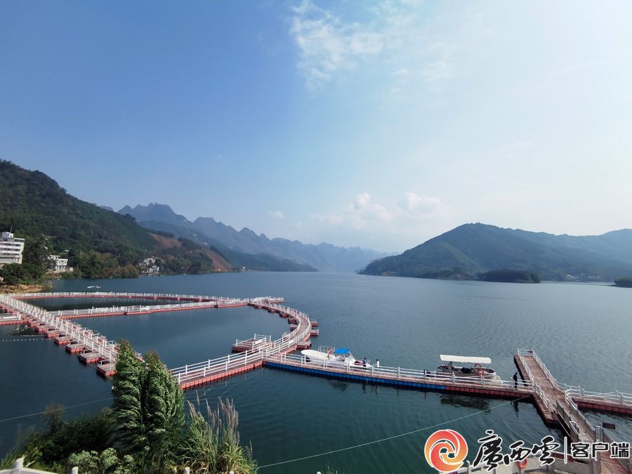 11月23日,“新興河池 綠動文旅——全國主流新媒體看河池大型采訪活動”采訪團來到大化瑤族自治縣紅水河—東盟國際垂釣基地,群山連綿、山環水繞,秀美的自然風光讓采訪團成員贊嘆連連。