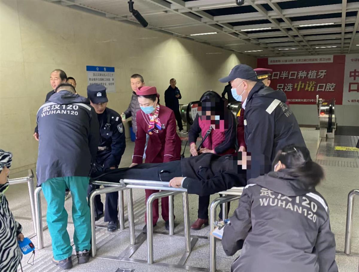 民警程金光介紹,11月25日上午9時10分許,他正在武漢地鐵6號線江漢路站警務室值班,突然接到地鐵工作人員求助,稱有一名爹爹因身體不適暈倒在地鐵車廂內,目前已被安全轉移至站臺,請求警務人員趕往現場救助。