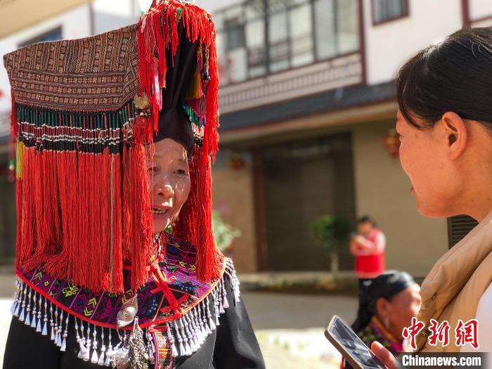 瑤鄉同胞鄧正姣身穿瑤族服飾,頭上高聳的鳳冠格外引人注目。“我頭上的鳳冠是家傳的,已經有兩百多年的歷史了,每次有重大活動我就戴著它。”鄧正姣說。