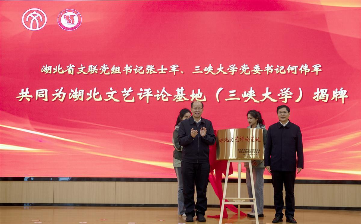 湖北省文聯黨組書記、常務副主席張士軍,三峽大學黨委書記何偉軍共同揭牌