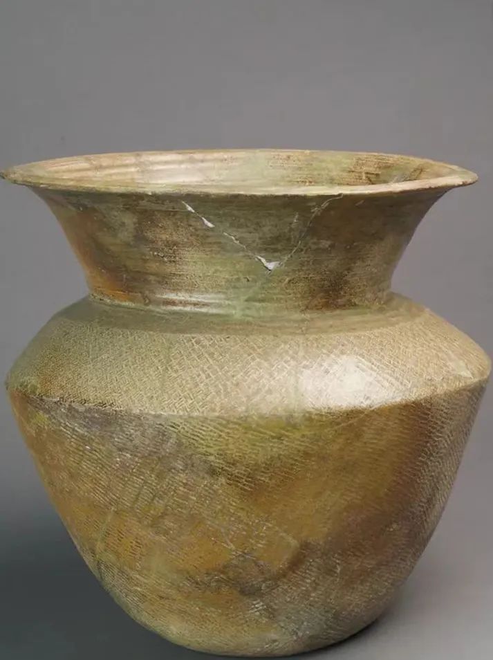 ▲商代青釉印紋大口尊 河南博物院藏。