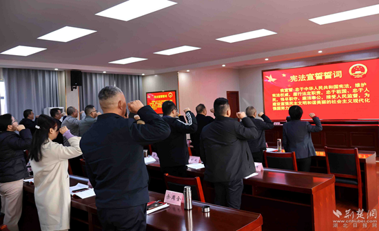 黃梅縣審計(jì)局在 “憲法宣傳周”期間開(kāi)展憲法宣誓活動(dòng),推動(dòng)法治宣傳入腦入心、化法隨行。通訊員 程方 供圖