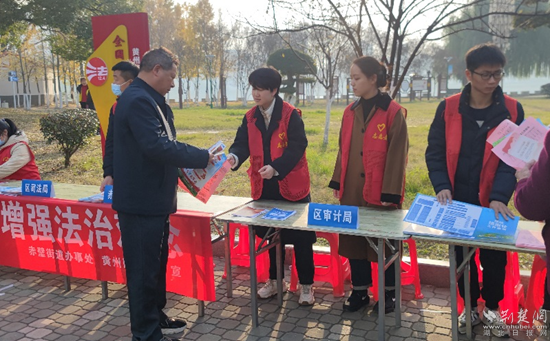 蘄春縣審計(jì)局在該縣法治文化主題公園設(shè)立法律咨詢臺(tái),發(fā)放宣傳手冊(cè)等方式宣傳國(guó)家憲法日的由來(lái)和相關(guān)法律知識(shí),為市民講解新修訂的《審計(jì)法》及財(cái)經(jīng)審計(jì)法規(guī)知識(shí)。通訊員 陳飄 供圖