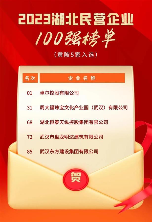 極目新聞記者注意到,卓爾控股有限公司、周大福珠寶文化產業園(武漢)有限公司、湖北恒泰天縱控股集團有限公司、武漢市盤龍明達建筑有限公司、武漢東方建設集團有限公司5家企業,上榜2023湖北民營企業100強榜單。同時,周大福珠寶文化產業園(武漢)有限公司上榜2023湖北民營企業制造業100強榜單。此外,卓爾控股有限公司、湖北恒泰天縱控股集團有限公司還上榜2023湖北民營企業服務業20強榜單。